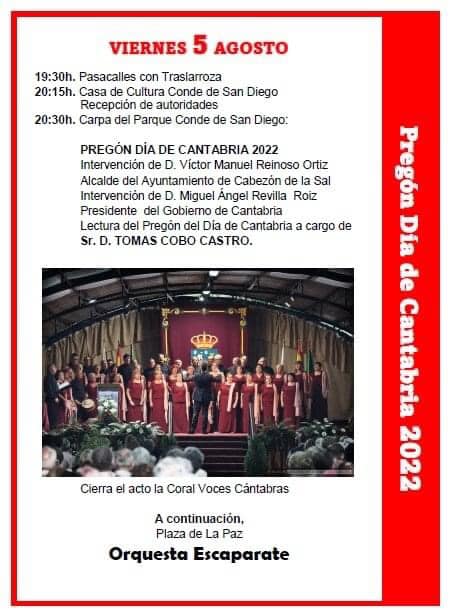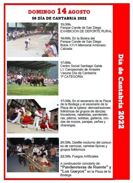 Detalles de EventoEste evento terminó el 14 agosto 2022Lugar de encuentro: Cabezón de la SalCategorías: Fiesta, Fiestas localesEtiquetas: Cabezón de la Sal, Día de Cantabria 2022, fiestas locales, fiestas populares56 Día de Cantabria 2022 ¿Nos ayudas a mantener miplanhoy.com?Mantener miplanhoy.com no es fácil y gracias a tu donación podremos seguir informándote de los eventos y planes para hacer en Cantabria. SUSCRÍBETESuscríbete a nuestro boletín de noticias y entérate de los mejores eventos y actividades en Cantabria Correo electrónico Please wait... Suscribirte ¡Gracias por suscribirte! QUÉ HACER EN CANTABRIA…HoyMañanaEl fin de semanaEl viernesEl sábadoEl domingoEsta semanaElegir un día diciembre 2025LMXJVSD 1 2 3 4 5 6 7 8 9 10 11 12 13 14 15 16 17 18 19 20 21 22 23 24 25 26 27 28 29 30 31 « Nov Ene » MERCADILLOS SEMANALES EN CANTABRIAMercados en Cantabria durante la semana TE INTERESAHoróscopo 10 de Marzo 2024Dónde celebrar la Feria de Abril en Cantabria 2024Programación Sala Niagara Febrero 2024CARTELERASSALAS DE CONCIERTOSala NiagaraRock-Beer The New