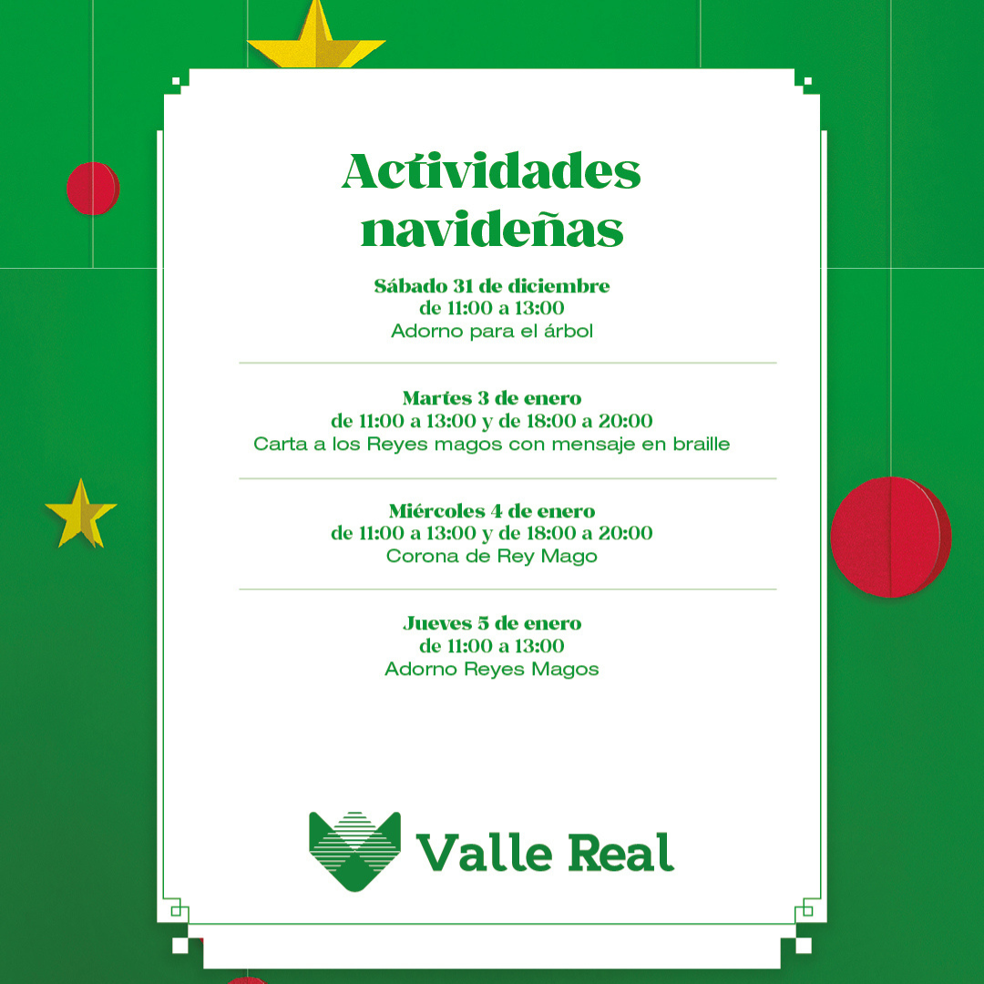 Detalles de Evento Date: 13 diciembre, 2022 20:30 – 5 enero, 2023 21:30 Lugar de encuentro: Centro Comercial Valle Real Categorías: Niños Etiquetas: actividades con niños, actividades para niños, Los Reyes Magos, Navidad, navidad 2022, niños, Papá Noel, Valle Real Actividades Navideñas Valle Real 2022 Eventos que pueden interesarte:CONCIERTO THE COMMITMENTS TORRELAVEGA ¿Nos ayudas a mantener miplanhoy.com?Mantener miplanhoy.com no es fácil y gracias a tu donación podremos seguir informándote de los eventos y planes para hacer en Cantabria. SUSCRÍBETESuscríbete a nuestro boletín de noticias y entérate de los mejores eventos y actividades en Cantabria Correo electrónico Please wait... Suscribirte ¡Gracias por suscribirte! QUÉ HACER EN CANTABRIA…Hoy Mañana El fin de semana El viernes El sábado El domingo Esta semana Elegir un día febrero 2026 LMXJVSD 1 2 3 4 5 6 7 8 9 10 11 12 13 14 15 16 17 18 19 20 21 22 23 24 25 26 27 28 « Ene Mar » MERCADILLOS SEMANALES EN CANTABRIAMercados en Cantabria durante la semana TE INTERESA Horóscopo 10 de Marzo 2024 Dónde celebrar la Feria de Abril en Cantabria 2024 Programación Sala Niagara Febrero 2024 CARTELERASSALAS DE CONCIERTOSala NiagaraRock-Beer The New