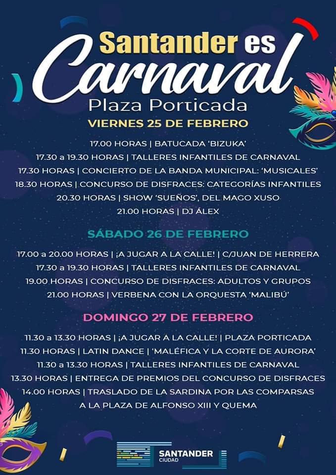 - Y de nuevo en la Plaza Porticada habrá talleres infantiles, en esta ocasión, los más pequeños podrán hacer máscaras santanderinas, viseras animaladas y pintacaras.