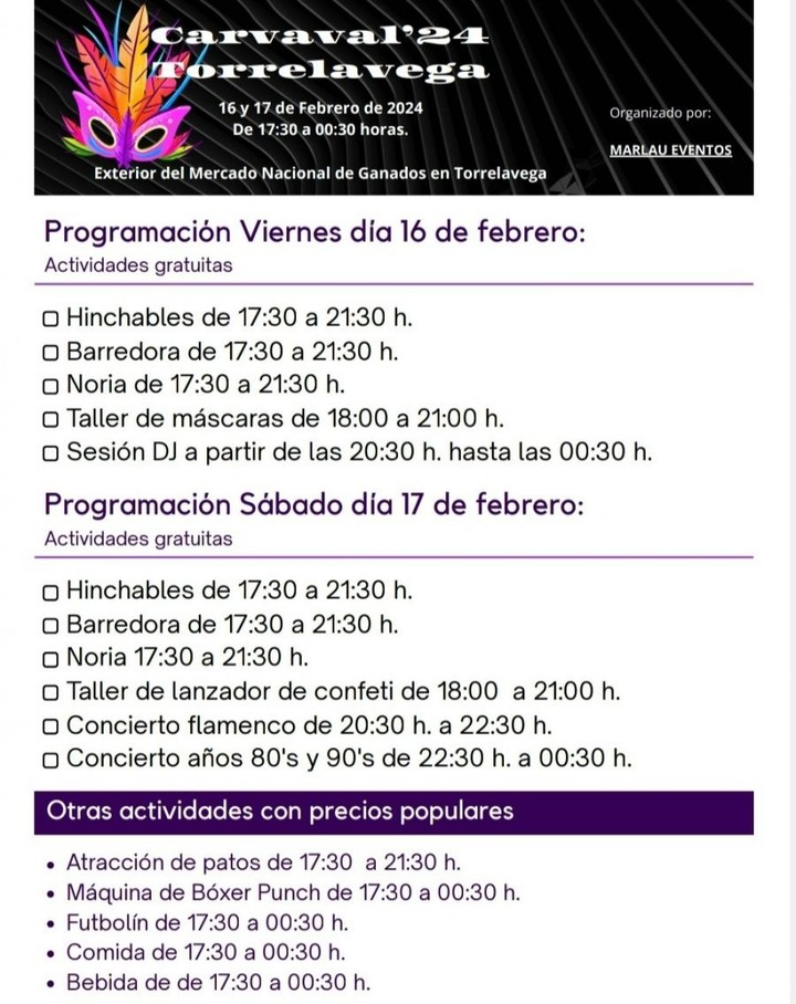 Programa Viernes 16 y Sábado 17 Carnaval Torrelavega 2024