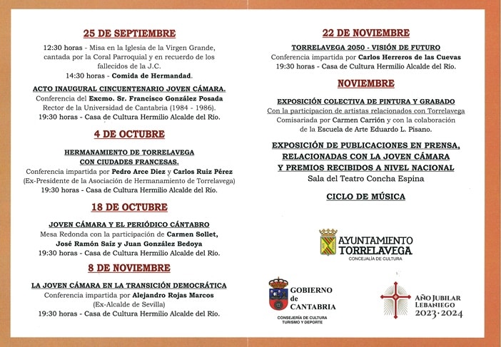 Detalles de EventoEste evento terminó el 22 noviembre 2023Lugar de encuentro: Casa de Cultura de TorrelavegaCategorías: Música y conciertosEtiquetas: concierto, Conciertos, música, TorrelavegaConciertos Joven Cámara Torrelavega Cincuentenario 1973-2023 ¿Nos ayudas a mantener miplanhoy.com?Mantener miplanhoy.com no es fácil y gracias a tu donación podremos seguir informándote de los eventos y planes para hacer en Cantabria. SUSCRÍBETESuscríbete a nuestro boletín de noticias y entérate de los mejores eventos y actividades en Cantabria Correo electrónico Please wait... Suscribirte ¡Gracias por suscribirte! QUÉ HACER EN CANTABRIA…HoyMañanaEl fin de semanaEl viernesEl sábadoEl domingoEsta semanaElegir un día octubre 2025LMXJVSD 1 2 3 4 5 6 7 8 9 10 11 12 13 14 15 16 17 18 19 20 21 22 23 24 25 26 27 28 29 30 31 « Sep Nov » MERCADILLOS SEMANALES EN CANTABRIAMercados en Cantabria durante la semana TE INTERESAHoróscopo 10 de Marzo 2024Dónde celebrar la Feria de Abril en Cantabria 2024Programación Sala Niagara Febrero 2024CARTELERASSALAS DE CONCIERTOSala NiagaraRock-Beer The New