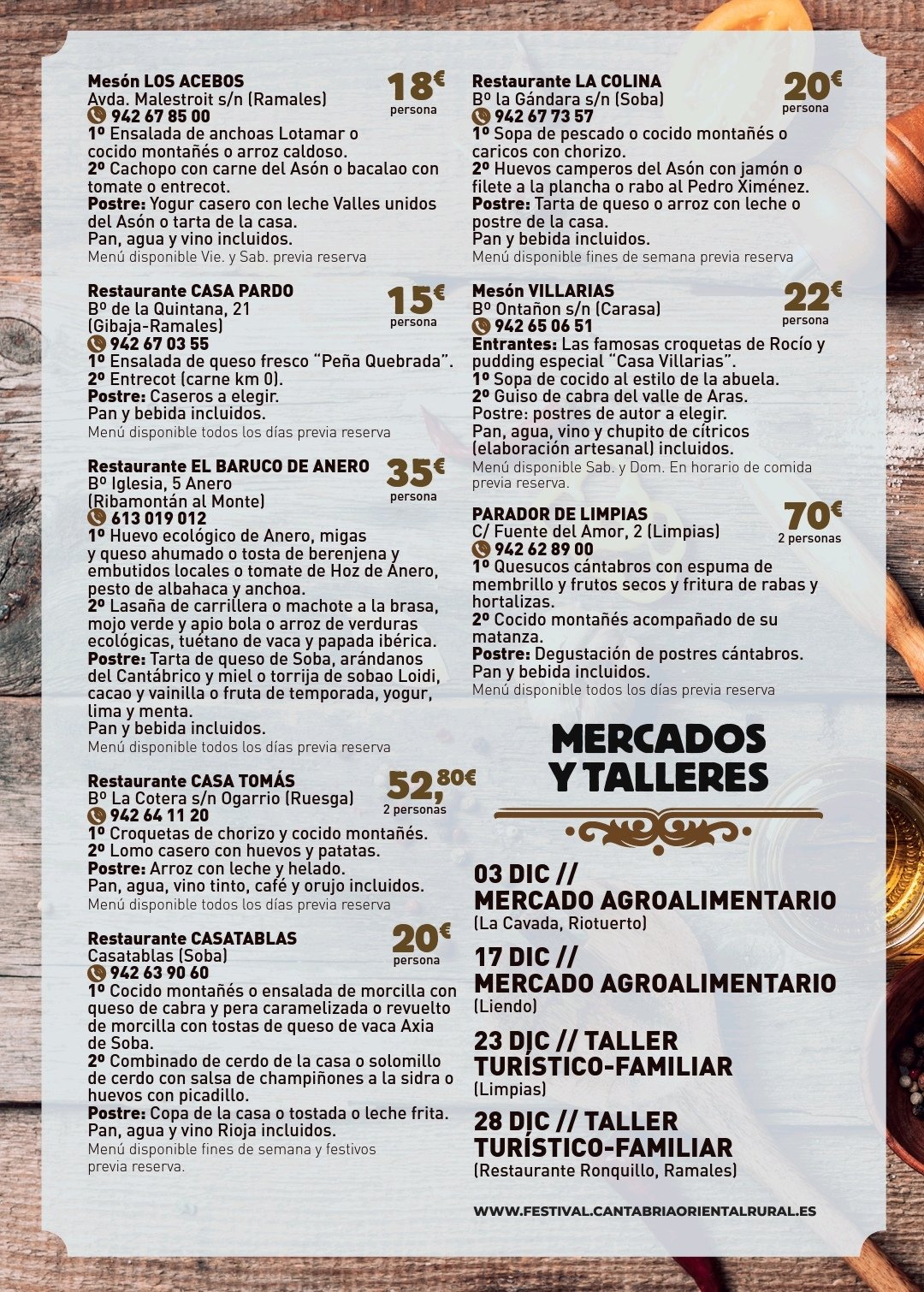 Detalles de Evento Date: 11 noviembre, 2022 11:30 – 28 diciembre, 2022 12:30 Lugar de encuentro: Agüero Categorías: Gastronomía Etiquetas: Agüero, Cantabria, Gastronomía, Mercado, talleres, Trasmiera Festival Gastro de Otoño 2022 Programa y Actividades Festival Gastro de Otoño 2022 ¿Nos ayudas a mantener miplanhoy.com?Mantener miplanhoy.com no es fácil y gracias a tu donación podremos seguir informándote de los eventos y planes para hacer en Cantabria. SUSCRÍBETESuscríbete a nuestro boletín de noticias y entérate de los mejores eventos y actividades en Cantabria Correo electrónico Please wait... Suscribirte ¡Gracias por suscribirte! QUÉ HACER EN CANTABRIA…Hoy Mañana El fin de semana El viernes El sábado El domingo Esta semana Elegir un día febrero 2026 LMXJVSD 1 2 3 4 5 6 7 8 9 10 11 12 13 14 15 16 17 18 19 20 21 22 23 24 25 26 27 28 « Ene Mar » MERCADILLOS SEMANALES EN CANTABRIAMercados en Cantabria durante la semana TE INTERESA Horóscopo 10 de Marzo 2024 Dónde celebrar la Feria de Abril en Cantabria 2024 Programación Sala Niagara Febrero 2024 CARTELERASSALAS DE CONCIERTOSala NiagaraRock-Beer The New