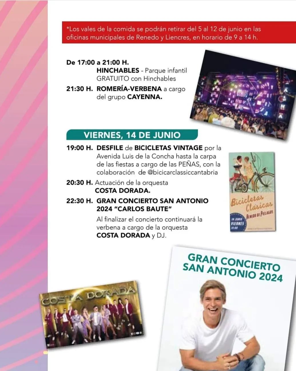 • 19:00 H: Desfile de bicicletas vintage por la Avenida Luis de la Concha hasta la carpa de las fiestas a cargo de las Peñas, con la colaboración de @bicicletasclasiccantabria.