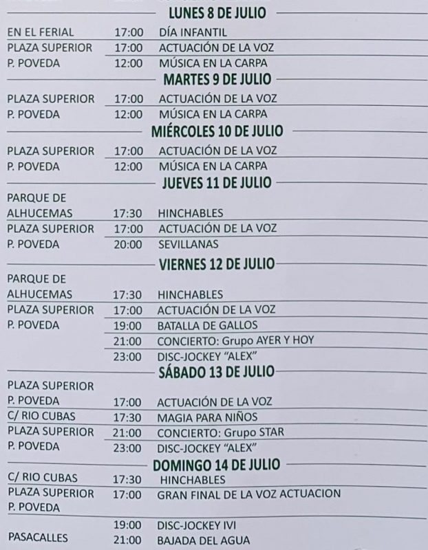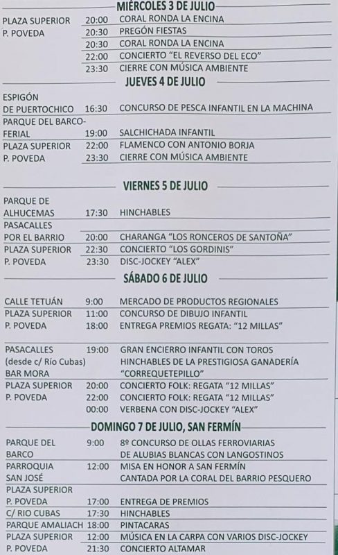 Incluye los horarios de los famosos «encierrucos» con toros hinchables para los más peques, que vuelven a celebrarse otra vez.