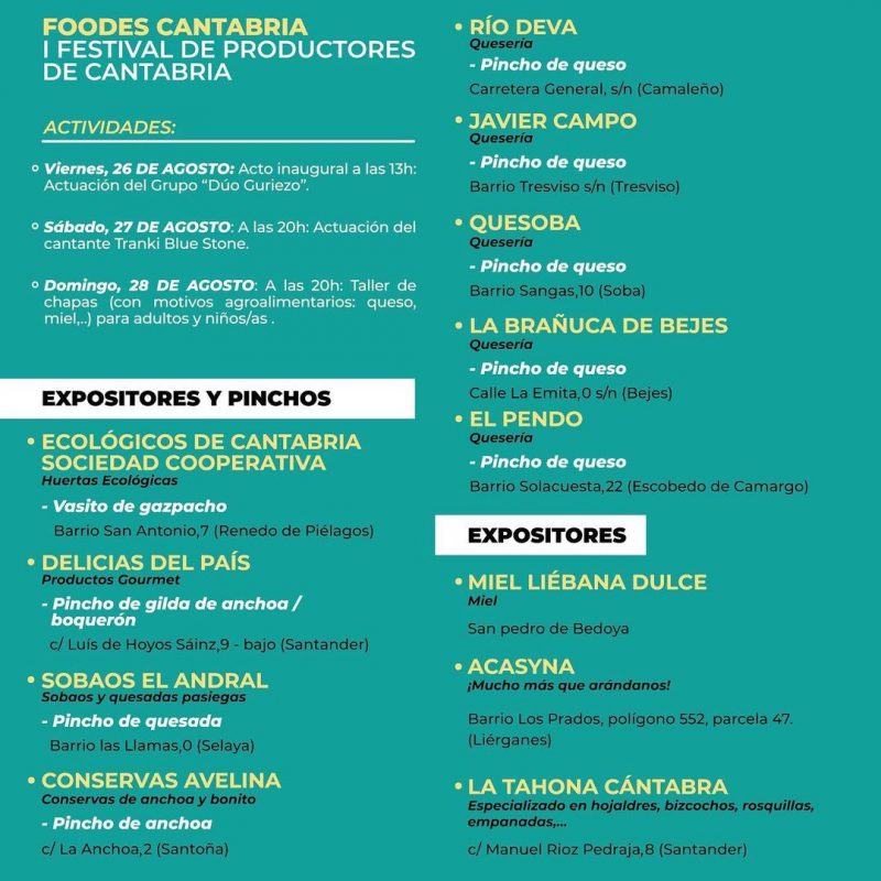 ¿Pensando en llenar la cesta de la compra? Espera a este fin de semana y visita el ‘I Festival de Productores de Cantabria’, en la Plaza de Pombo. Destacará la calidad de las materias primas 100% de la región y el gran trabajo del gremio agroalimentario. Abrirá sus puertas el viernes 26, a las 13.00 horas, y podrá visitarse hasta el domingo 28. ¡Una cita que promete alimentarnos mucho y bien! 😋