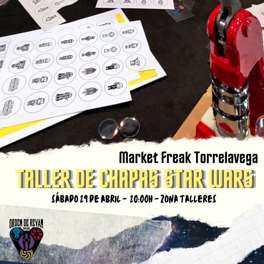20:00hrs. Taller de Creación de Chapas Star Wars. 1 chapa 2€, 2 chapas 3€. Recomendado para mayores de 8 años. (Zona talleres)