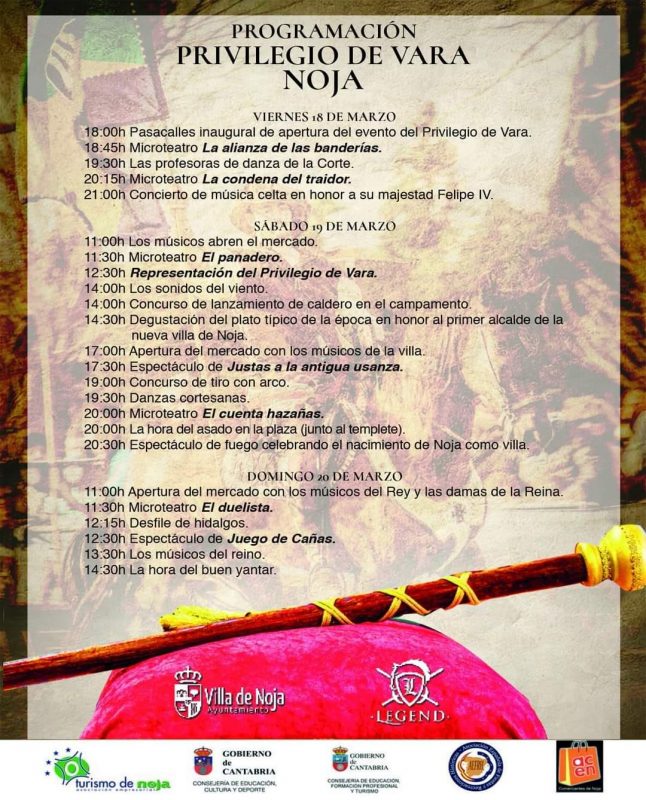 Detalles de EventoDate: 18 – 20 marzo, 2022Lugar de encuentro: NojaCategorías: Cultura, EspectáculosEtiquetas: gratis, nojaPrivilegio de Vara Eventos que pueden interesarte:Rosalía LUX Tour 2026: Fechas, ciudades, entradas y todo lo que debes saberLa Gran Champanada Santander 2025"Retrato de un Albarquero"Ballena Sound Santander 2025 ¿Nos ayudas a mantener miplanhoy.com?Mantener miplanhoy.com no es fácil y gracias a tu donación podremos seguir informándote de los eventos y planes para hacer en Cantabria. SUSCRÍBETESuscríbete a nuestro boletín de noticias y entérate de los mejores eventos y actividades en Cantabria Correo electrónico Please wait... Suscribirte ¡Gracias por suscribirte! QUÉ HACER EN CANTABRIA…HoyMañanaEl fin de semanaEl viernesEl sábadoEl domingoEsta semanaElegir un día diciembre 2025LMXJVSD 1 2 3 4 5 6 7 8 9 10 11 12 13 14 15 16 17 18 19 20 21 22 23 24 25 26 27 28 29 30 31 « Nov Ene » MERCADILLOS SEMANALES EN CANTABRIAMercados en Cantabria durante la semana TE INTERESAHoróscopo 10 de Marzo 2024Dónde celebrar la Feria de Abril en Cantabria 2024Programación Sala Niagara Febrero 2024CARTELERASSALAS DE CONCIERTOSala NiagaraRock-Beer The New